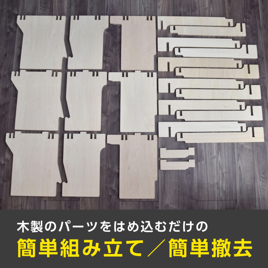 - ネジでの固定は無く、木製のパーツをはめ込むだけの簡単組み立て。